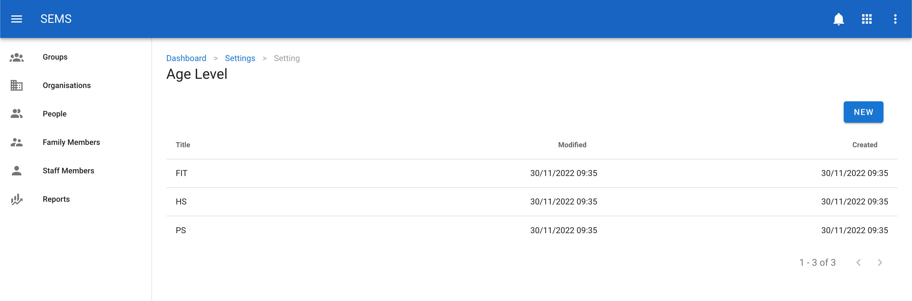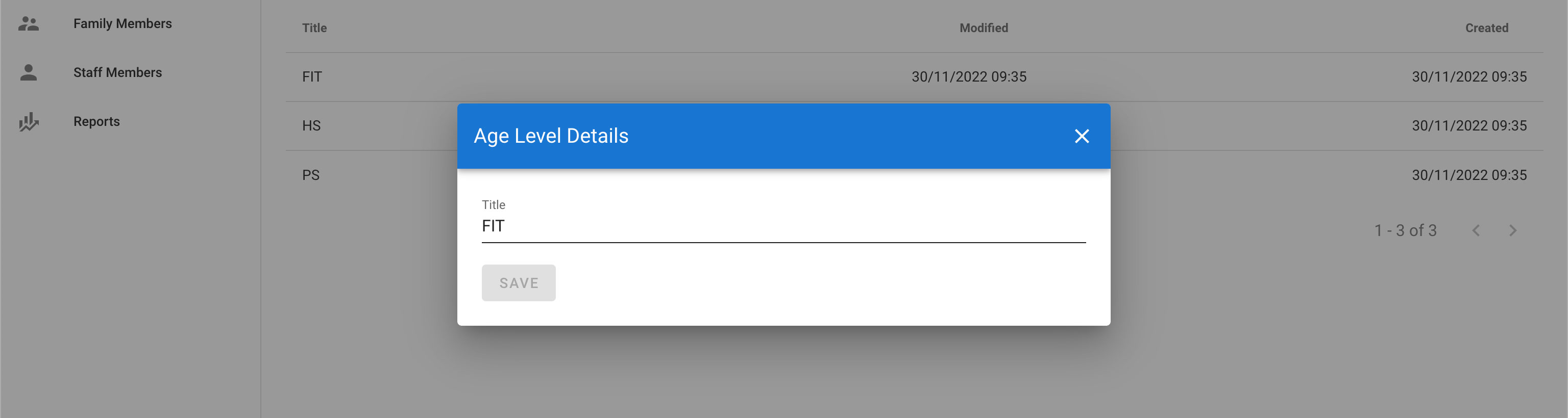 From the 'Age Level' setting list, click on the title of the item you want to edit.