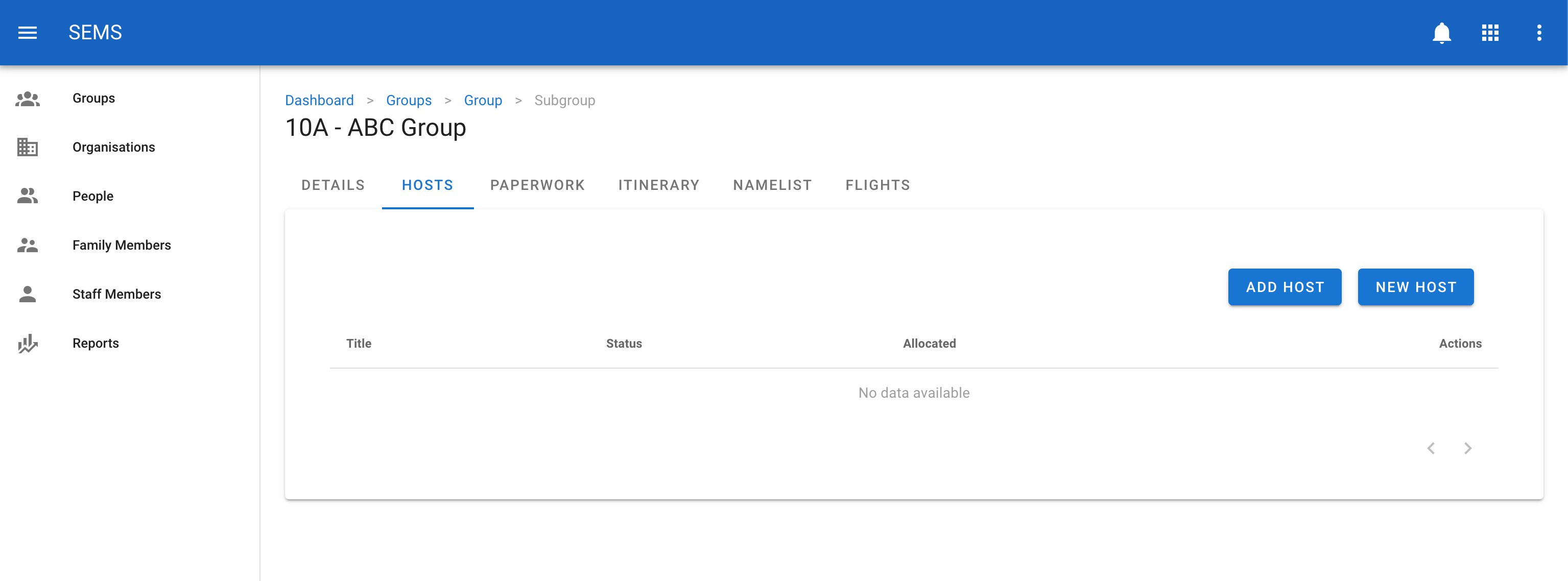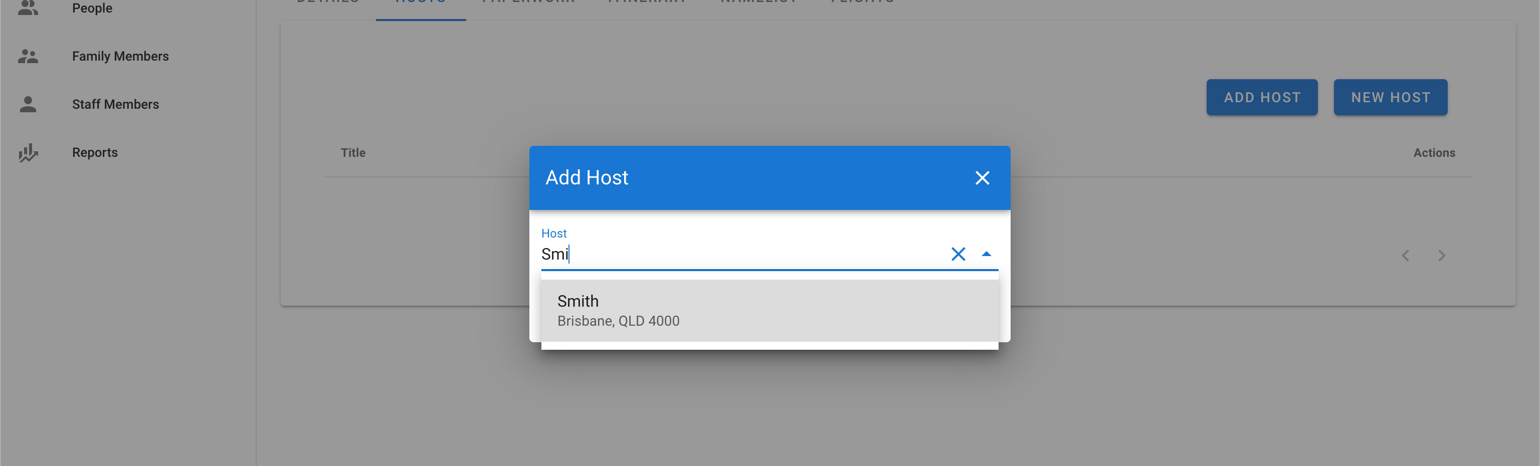 If you already know that the host exists in the system you can add them by clicking on the Add Host button. This allows you to search for an existing family in the popup.
