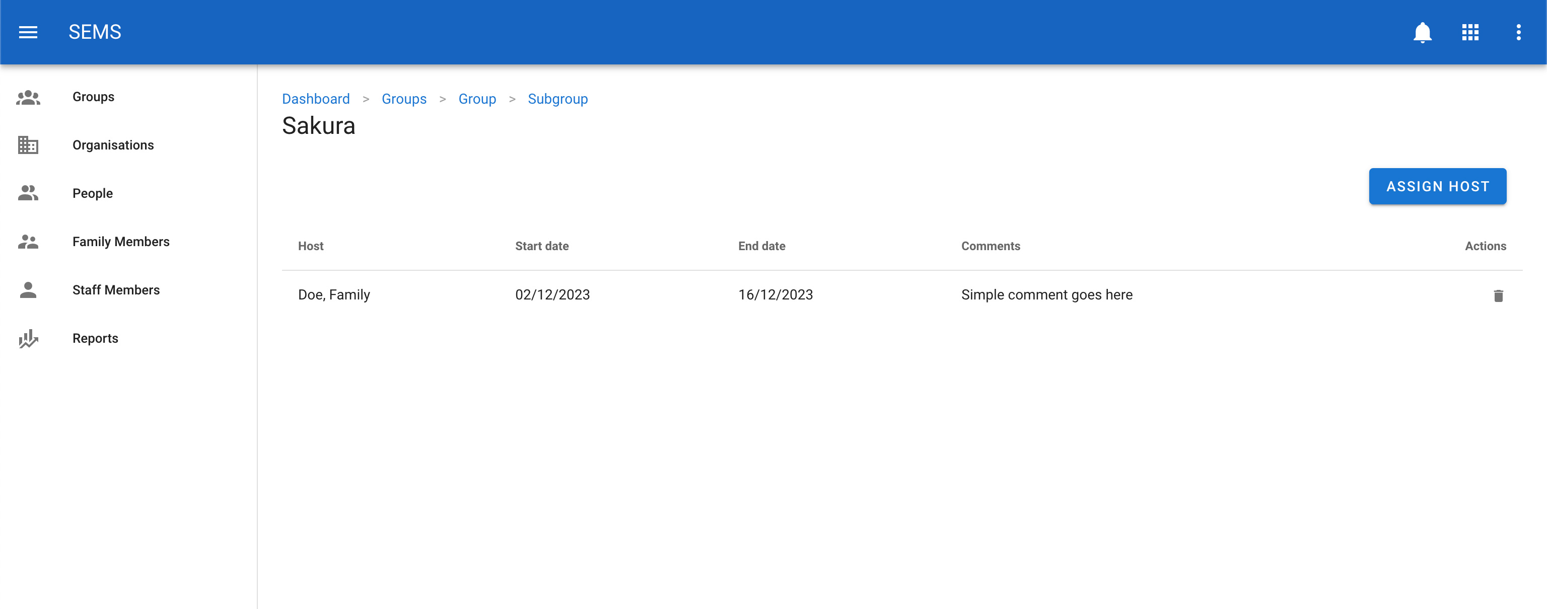 Then remove the host by clicking on the trash icon next to the host family name. This will only remove them from this student and not the system.