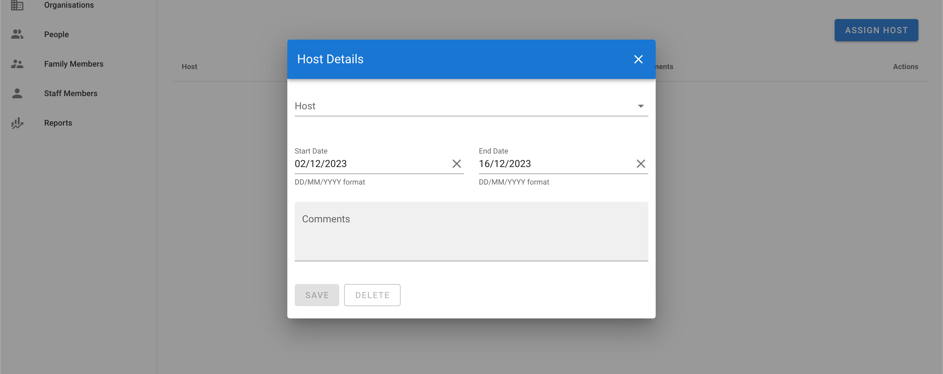 Assign student to host family