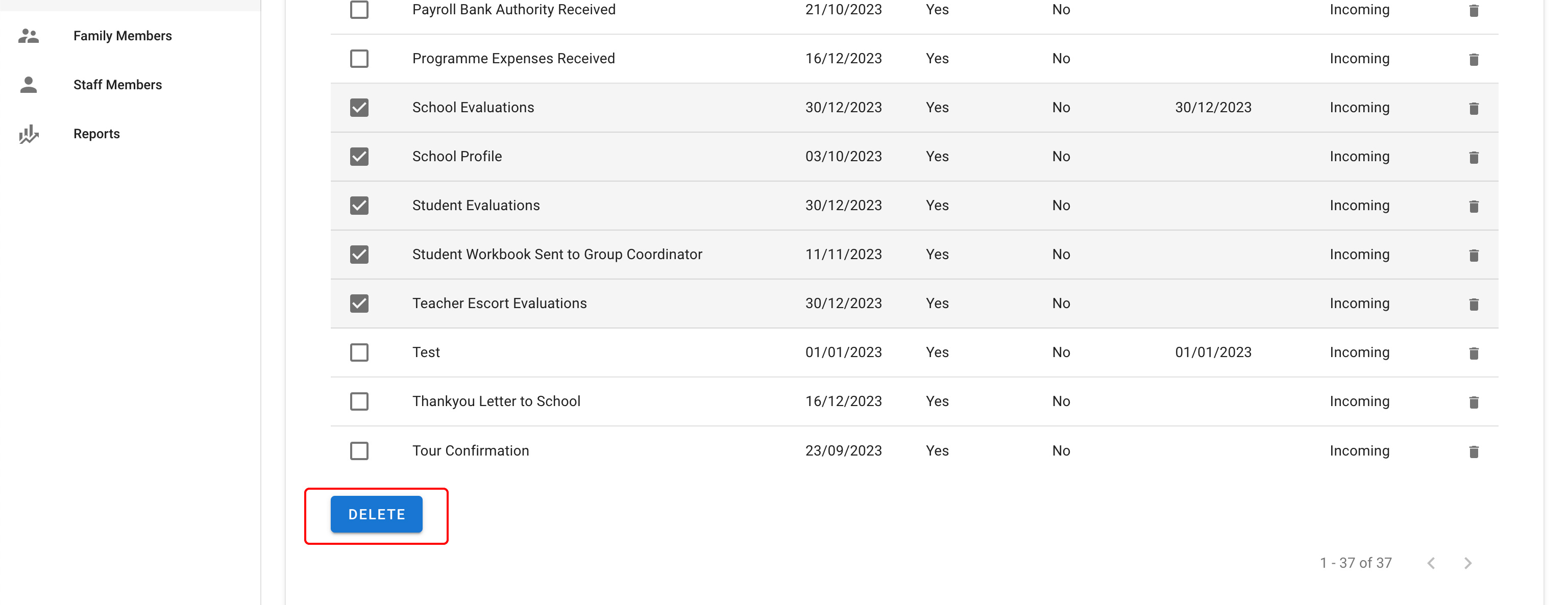 You can also delete multiple pieces of paperwork, by ticking the checkboxes next to each piece of paperwork and scrolling to the bottom, and clicking on the Delete button.