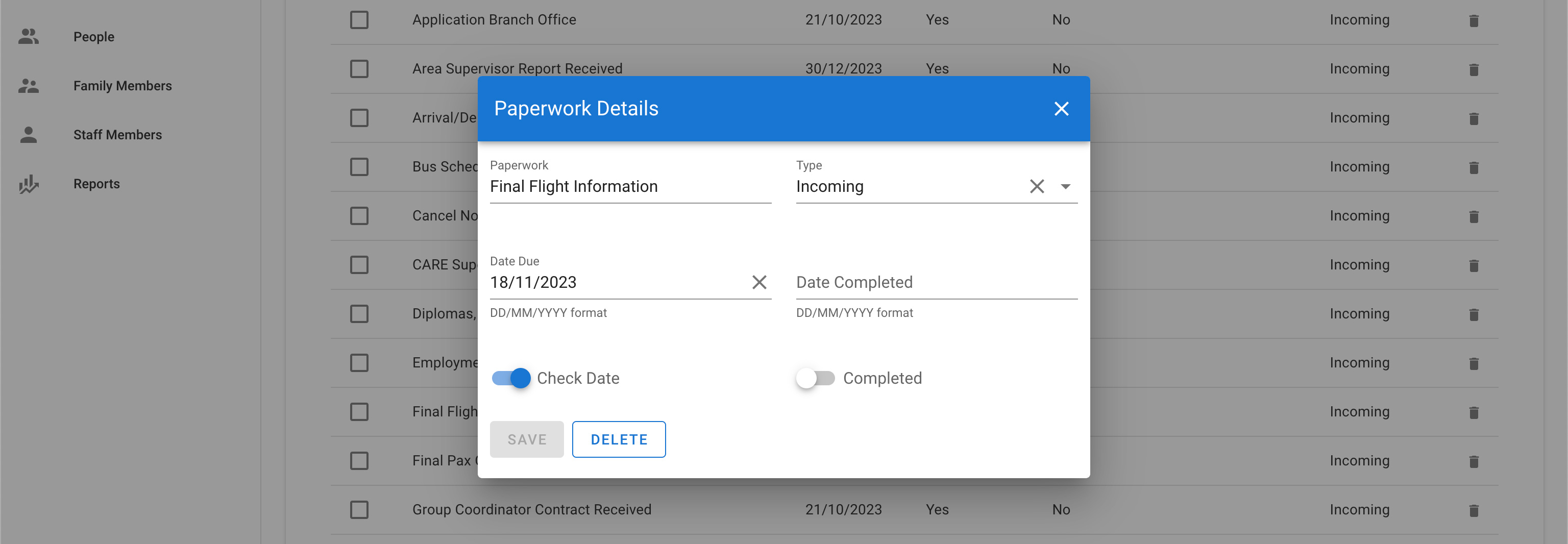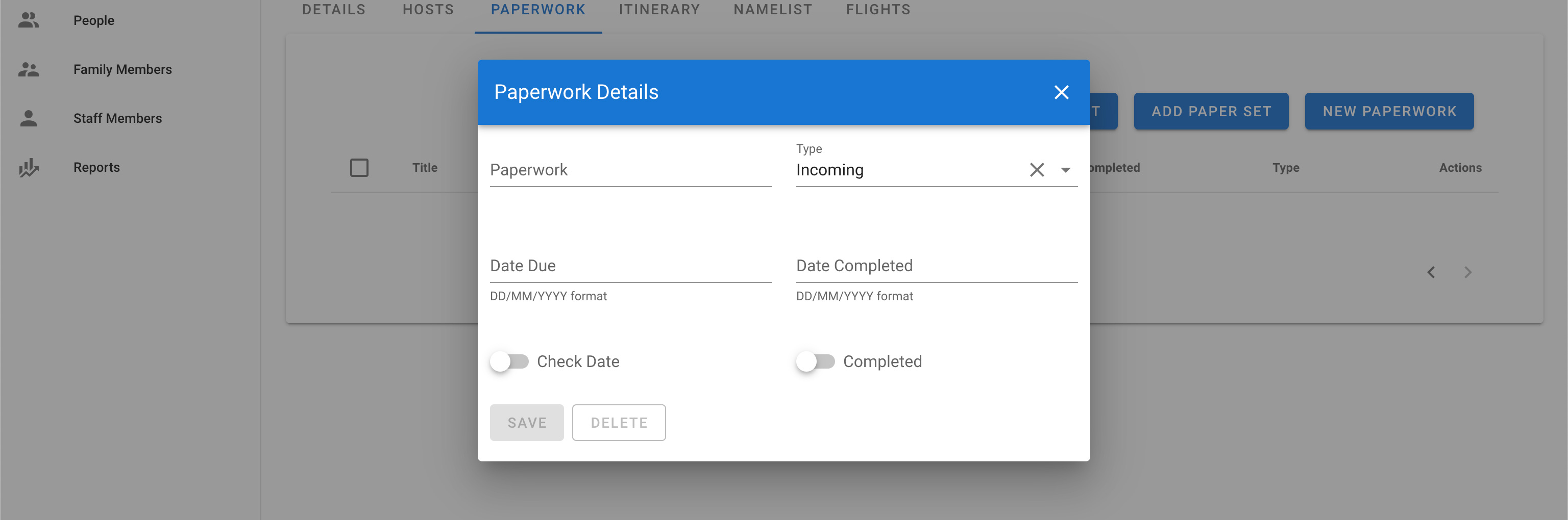 If you want to manually add a new type of paperwork you can click on the New Paperwork button. This will enable you to manually fill in all of the options for the paperwork that needs to be provided.