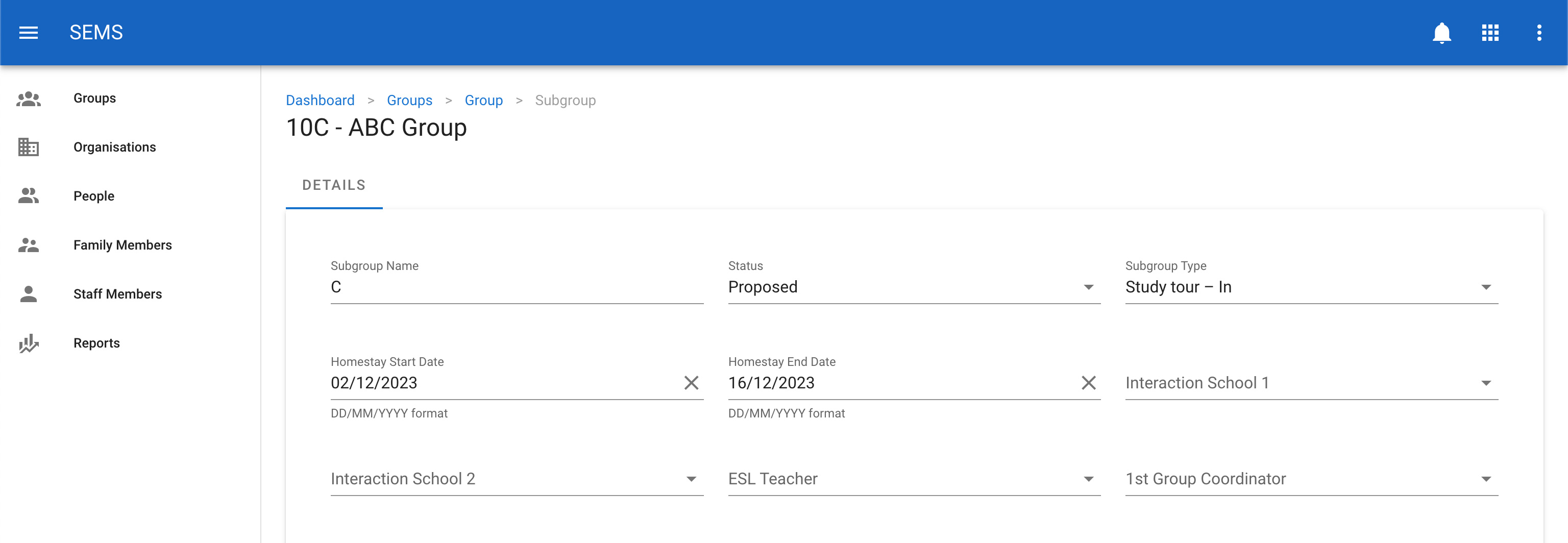 Once on the sub group edit screen, update the relevant fields. Then confirm the change by clicking the Save button.